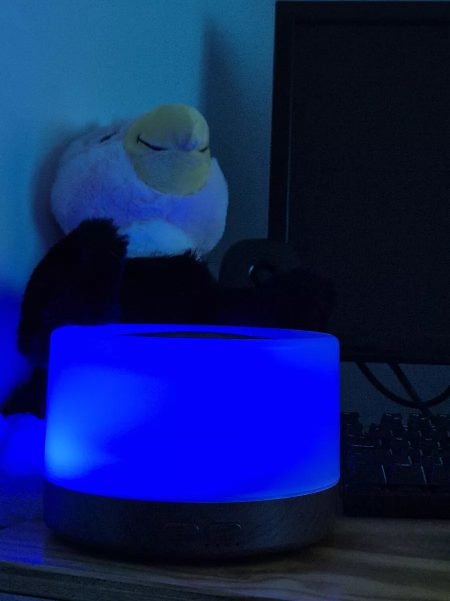Gracias a su tecnología ultrasónica, convierte agua y aceites esenciales en una niebla fría que se dispersa de forma silenciosa, manteniendo la humedad del aire y ayudando a mejorar la calidad del sueño, aliviar la resequedad y generar un ambiente de relajación total.